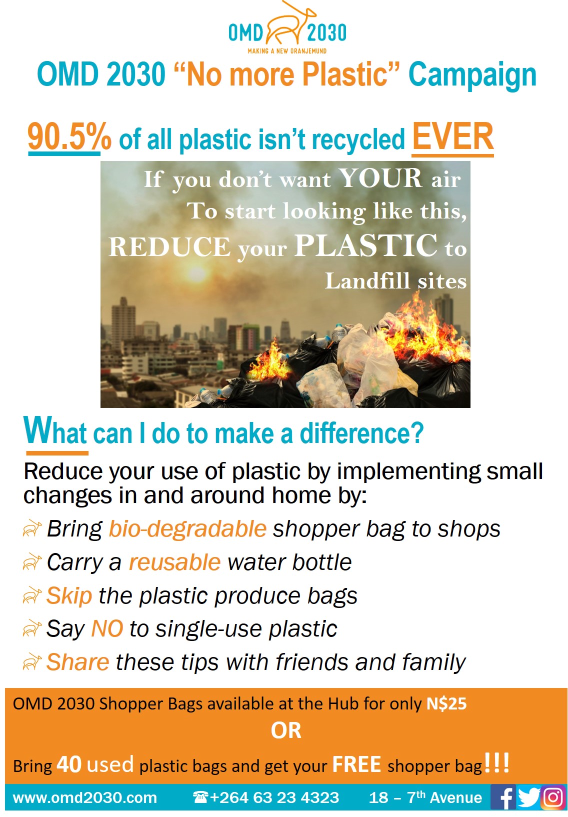 Plastic pollution is a world-wide problem. Apart from littering the environment, it causes harm to the animals that live there. We are not exempt here in Oranjemund. We encourage community members to reduce your use of plastics, say no to single-use plastics, reuse your plastic water bottles and recycle plastic that you have finished using.