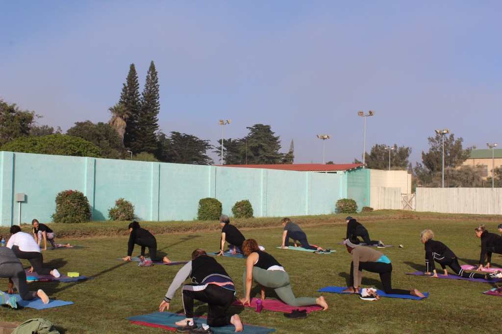 In November 2019, the first Oranjemund Yogathon was hosted by OMD 2030. This event saw the participation of over 100 community members, who explored various yoga poses, including the cat, cow, downward dog, and tree poses. The atmosphere was further enriched by the presence of a few curious oryx, who observed the participants as they engaged in their practice.